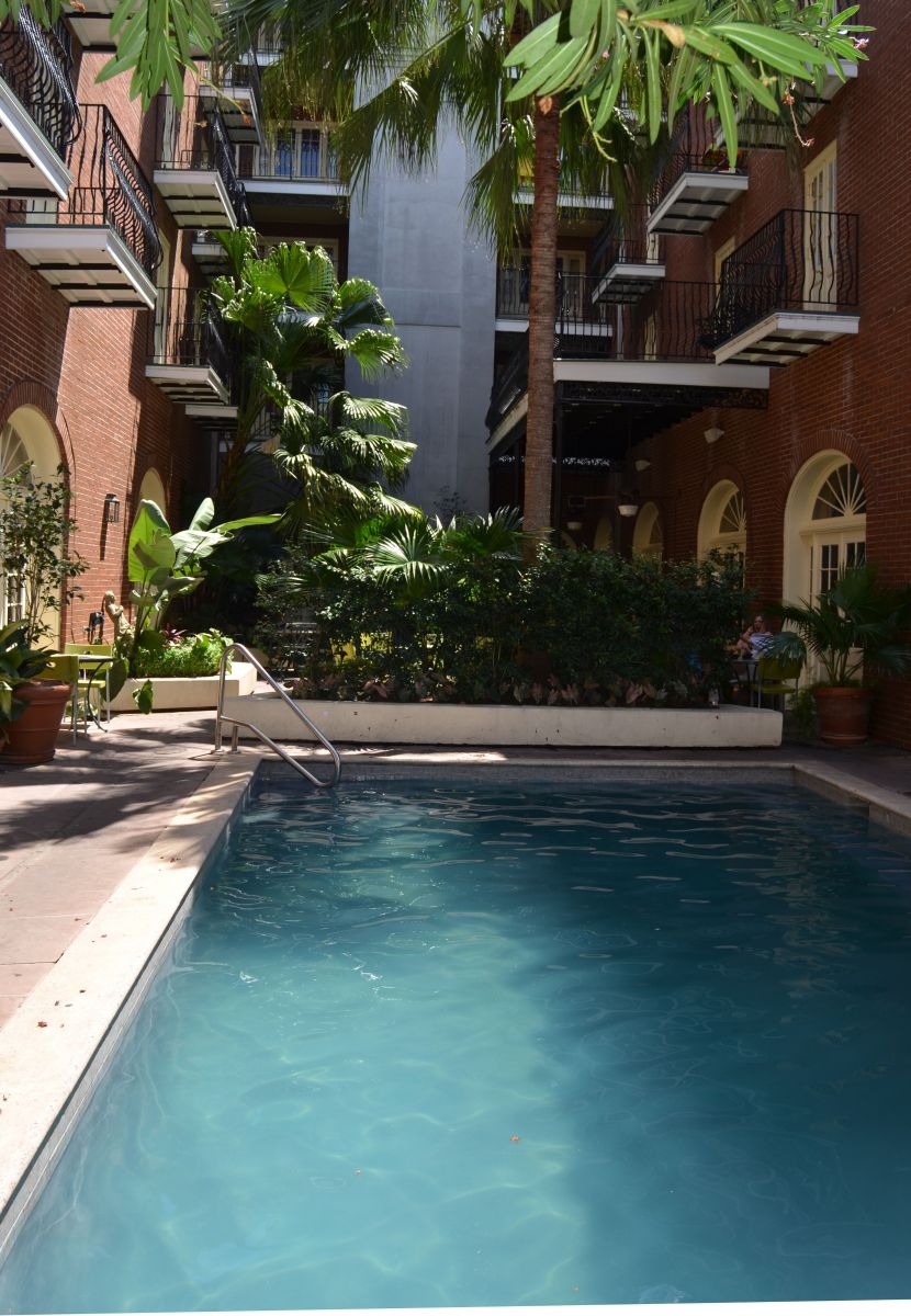 One of the best hotel pools in the French Quarter area is at Hotel St. Marie. Palm trees surround the long, elegant pool area in the hotel’s courtyard. Black iron balconies surround the pool from above, giving it that classic French Quarter vibe. And you’re never too far away from your room or the lobby, so if you don’t have time to take a leisurely swim, then taking a quick dip is always an easy option.